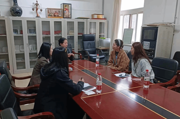 党委书记马娟、副书记王淼、2019级本科生辅导员李慧娟以及2023届毕业生与乌鲁木齐市艺术剧院两位代表在18号楼会议室进行洽谈。