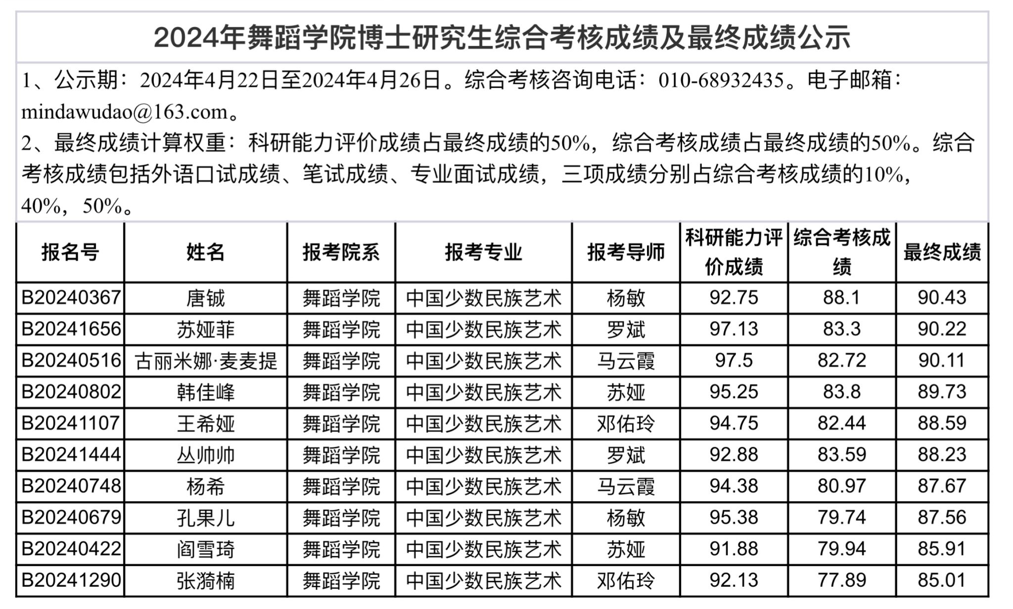 2024年开车漫画 博士研究生综合考核成绩及最终成绩公示