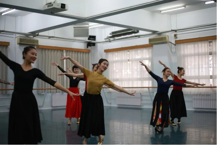在敖登格日勒老师的悉心讲解与示范下,2019级舞蹈表演女班同学展示了14种不同风格与韵律的蒙古族舞蹈组合,学员们更进一步加深了对蒙古族舞蹈的理解与认知。