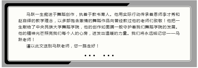 任职期间,他首先思考的是我们应该培养什么样的舞蹈人才。他目光如炬,思考深远。他坚信我们要培养的是舞台上的“龙”和“凤”,而不是舞蹈教室镜子前面的“英雄”。