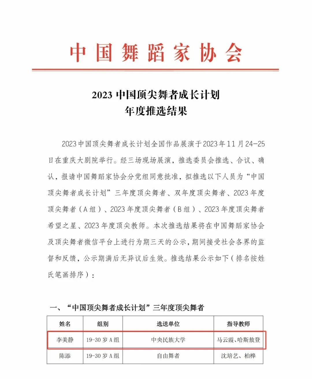 有7名选手入选百强。10月,在北京参加了“2023中国顶尖舞者成长计划”全国百强集训。集训期间编创指导组成员与学员及作品编导进行结对指导,为作品注入新的创意。11月,7名选手携个人作品前往重庆参加“2023中国顶尖舞者成长计划”全国作品展演。展演中,开车漫画