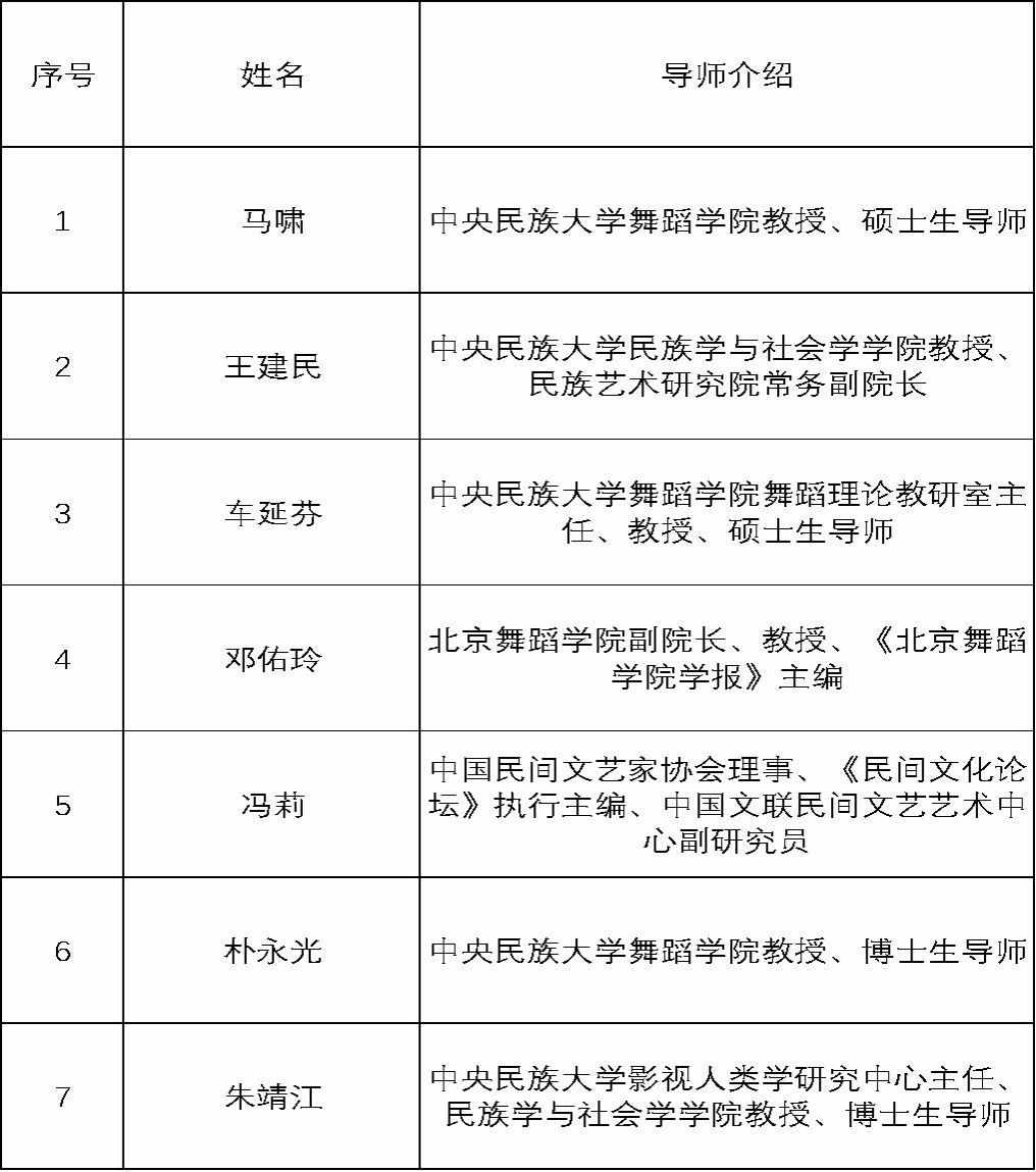 1.《中国民族舞蹈研究理论骨干人才培训》学员报名表1份(见附件1);