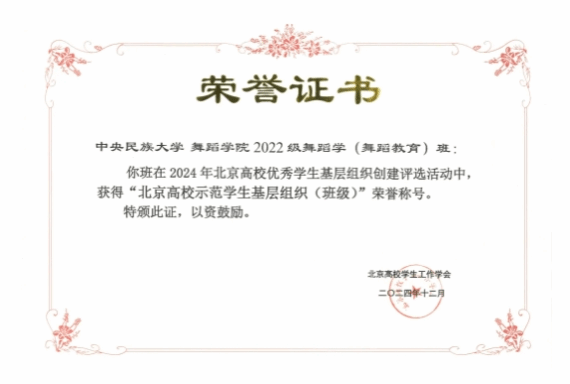 2022级舞蹈学(舞蹈教育)班迎来了荣耀时刻!在2024年北京高校优秀学生基层组织评选中,他们凭借卓越表现荣登校级先进班集体推荐榜,并斩获“北京高校示范学生基层组织(班级)”殊荣。让我们走进这个活力四射的集体,共同见证他们的荣耀与风采。