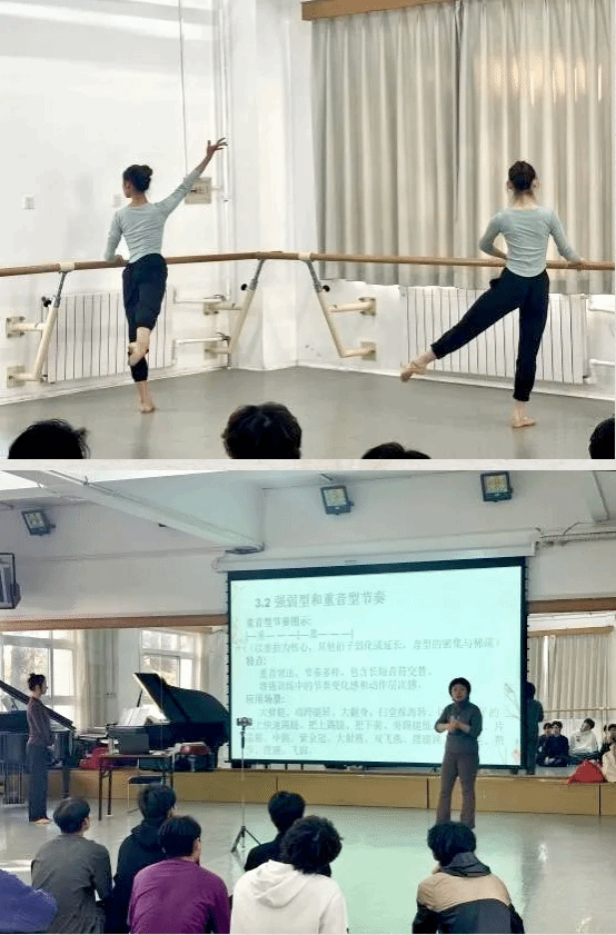 讲座伊始,许诺老师以历史中的音乐与舞蹈为切入点,强调在诸多艺术门类中,音乐与舞蹈的关系最为密切,存在着很多共通点。舞蹈需要音乐的激发和强化,舞蹈的创编活动需要配合音乐来进行,音乐与舞蹈具有紧密的诠释性。