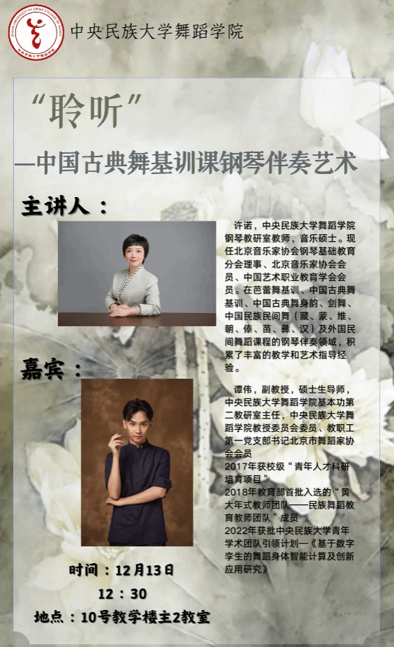 本次讲座以互视互鉴、交流共享的视角,充分加强音乐与舞蹈学科之间的关联性与互通性,通过跨学科的教学方式,学生不仅能够更好地理解音乐与舞蹈各自的艺术语言和表现手法,还能学会如何在创作中融合两者,创造出更具创新性和表现力的艺术作品,发挥艺术教育在促进各民族交往交流交融中的重要作用,通过舞蹈艺术作品传递民族力量。