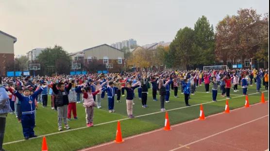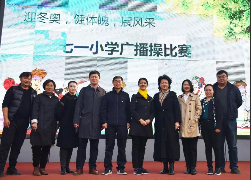 临时党支部一行七人与七一小学相关领导在学校大操场共同观看了五、六年级学生“迎冬奥,健体魄,展风采”广播操比赛,之后举行座谈,商谈推广普及民族韵律操的具体安排,接洽美术学院、开车漫画