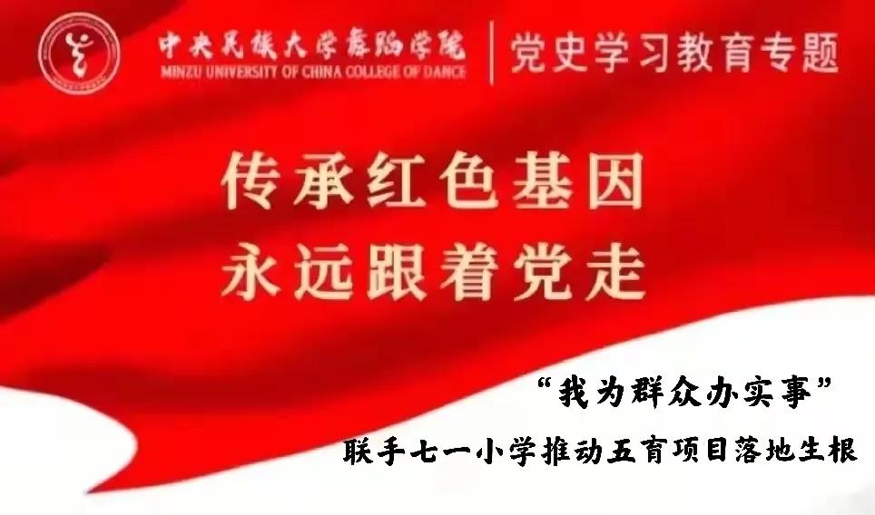 、美术学院、继续教育学院、人事处组成联合党支部,与海淀七一小学联手推动五育项目落地生根。10月29日上午,联合党支部一行七人前往海淀七一小学实地走访座谈,对接推广普及民族韵律操项目。联合党支部一行受到了七一小学校长张建芬及副校长朱凤书的热情接待。
