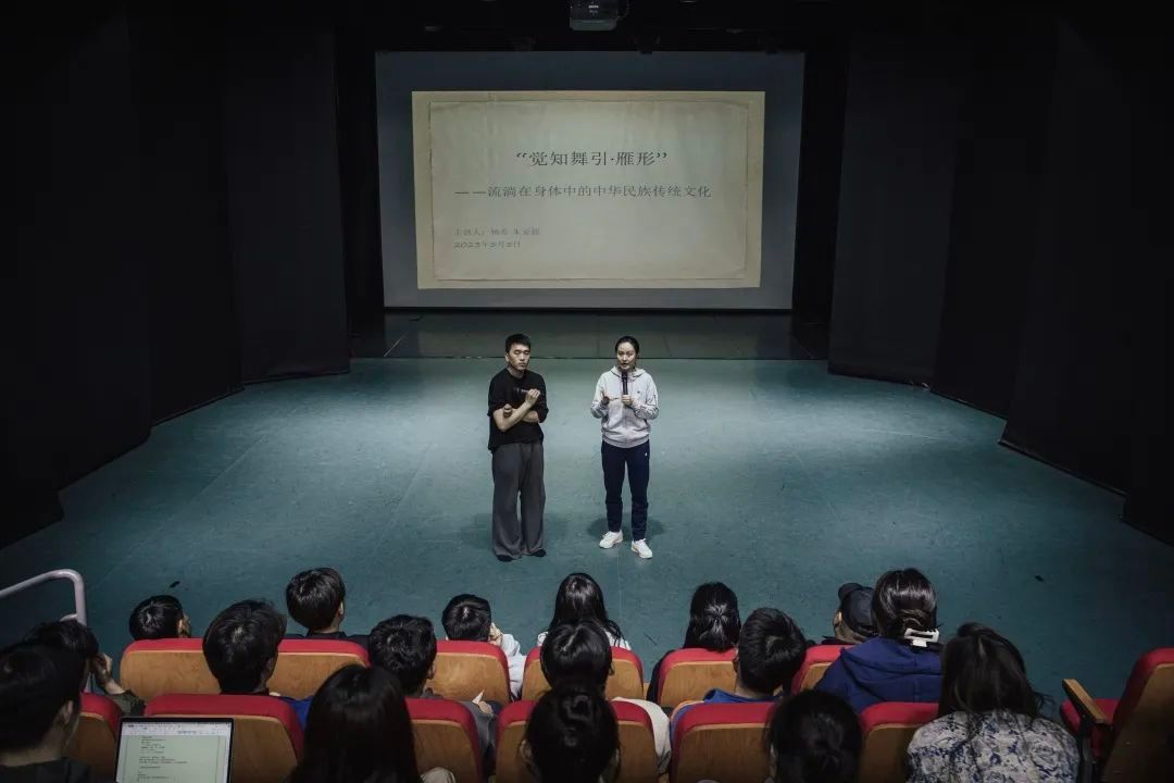 讲座伊始,同学们带来一场犹如“雁形”般“俯仰于天地,遨游于山水”之间的舞蹈展示,让在场观看、聆听与思考的老师和同学仿佛置身于中国传统文化“空寂幽玄、自由浪漫”的美学意境当中,感悟到古代天人合一的传统哲学思想。