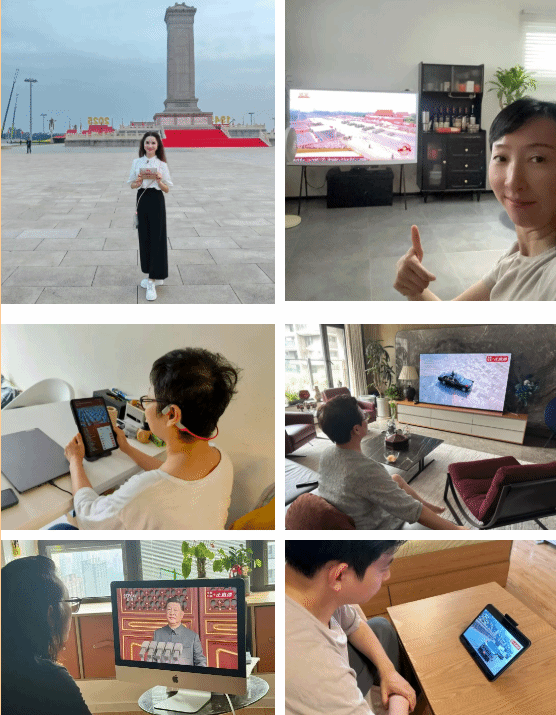 师生高度重视、精心组织,通过多种形式集中收看大会实况直播。学院领导及教师代表齐聚16号楼会议室,各年级学生在各排练厅及教室内统一观看,部分教师与全体新生则通过线上方式同步参与。著名舞蹈艺术家、学院教授古丽米娜作为北京市教育系统代表在现场观礼,亲身感受这一历史性时刻。