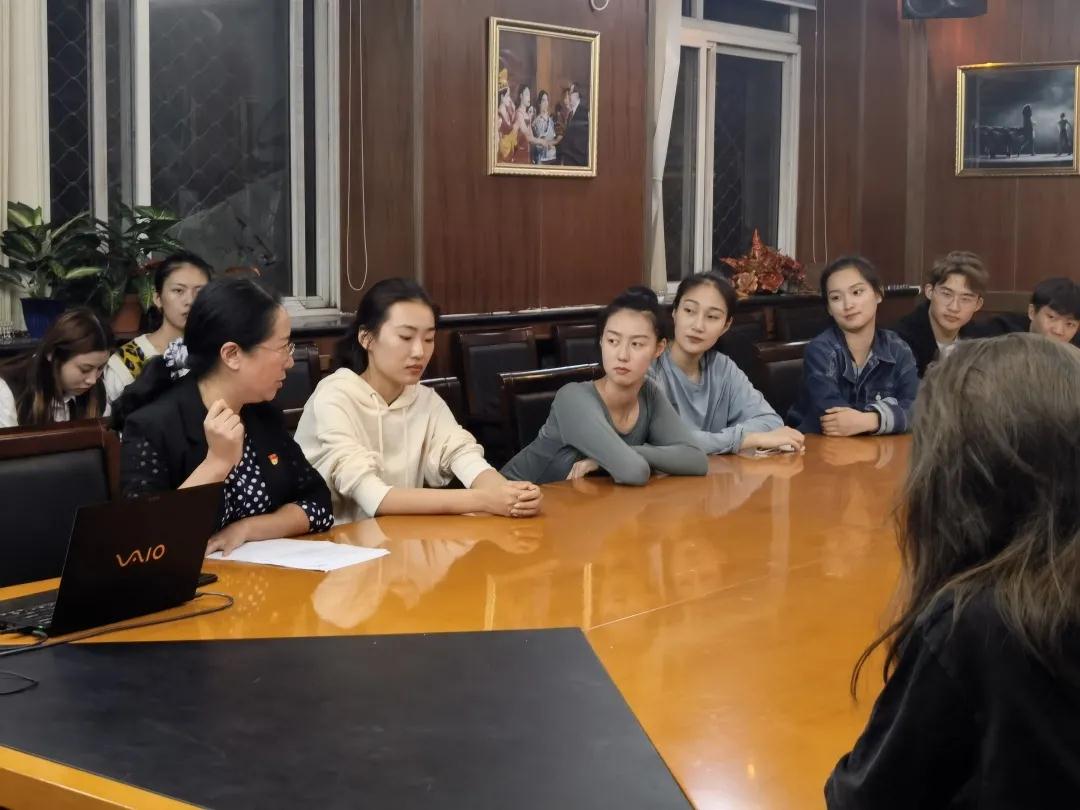 党员发展程序,马娟书记对党员发展的各项程序进行全面详细的讲述,并就入党申请书、思想汇报的书写要求进行了说明,耐心地解答了同学们的疑问,让同学们更加坚定了加入党组织的决心。马娟书记特别强调,民族英才班的设立,是为了培养更多的少数民族舞蹈专业人才,体现了党和国家对少数民族的关心与爱护,同学们要感党恩,听党话,跟党走,坚定文化自信,不断努力学习好专业本领,创作和表演更多优秀文艺作品,讴歌新时代,唱响主旋律,以实际行动来回报党和国家的培育,努力成为维护民族团结的社会主义事业合格建设者和接班人。