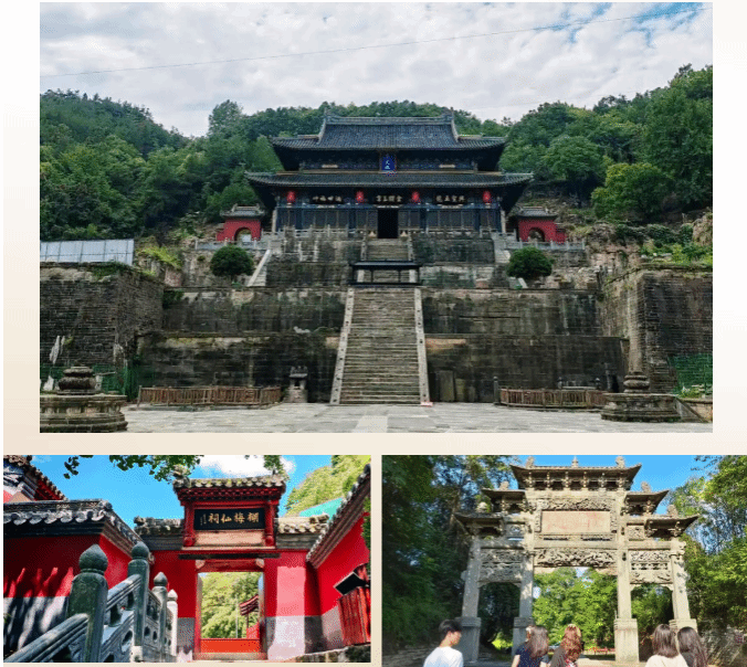 武当山古建筑群敕建于唐贞观年间,明代达到鼎盛,历代皇帝都将其作为皇室家庙修建,采用皇家建筑规制,形成了“五里一庵十里宫,丹墙翠瓦望玲珑,楼台隐映金银气,林岫回环画镜中”的“仙山琼阁”的意境。调研期间,团队走访了琼台中观、南岩宫、五龙宫、太和宫等不同朝代核心古建筑群,庙宇宏敞,建筑巍峨,古朴壮观,切实感受到道家“天人合一”“崇尚自然”的思想。