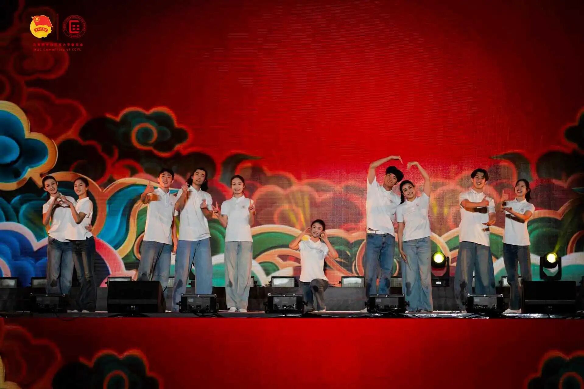 在《同唱颂歌》中,同学们与兄弟院系默契配合,以艺术语言唱响团结乐章;在长达21分钟的《光影回忆》里,他们用富有感染力的表演,精准刻画了各个时代的鲜明印记;在《多彩校园》的环节里,同学们更是在《交融世界》《大河之子》等不同风格的舞段中自如切换,通过肢体语言展现了中华文化的博大与包容;最终,晚会在开车漫画