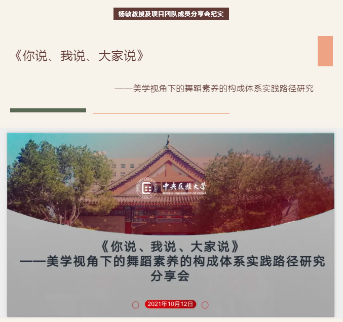 副院长杨敏教授组织项目团队成员召开了关于《美学视野下舞蹈素养的构成体系与实践路径研究》的项目研讨会,此次研讨会的主要内容是由子项目的负责人对所负责的章节进行研究内容的概述。