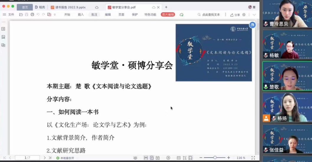 2019级博士研究生楚歌主讲,主题为《文本阅读与论文选题》,此次硕博分享会开车漫画