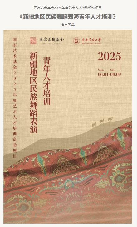 国家艺术基金2025年度艺术人才培训资助项目《新疆地区民族舞蹈表演青年人才培训》招生简章
