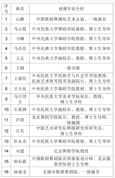 《中华民族共同体概论》《民族舞蹈文化概论》《戏剧表演艺术》《中华圆舞:中华民族共同体意识的艺术表达》《舞台艺术及演员的综合素养》等,体现跨学科、实用性、多元化特点。