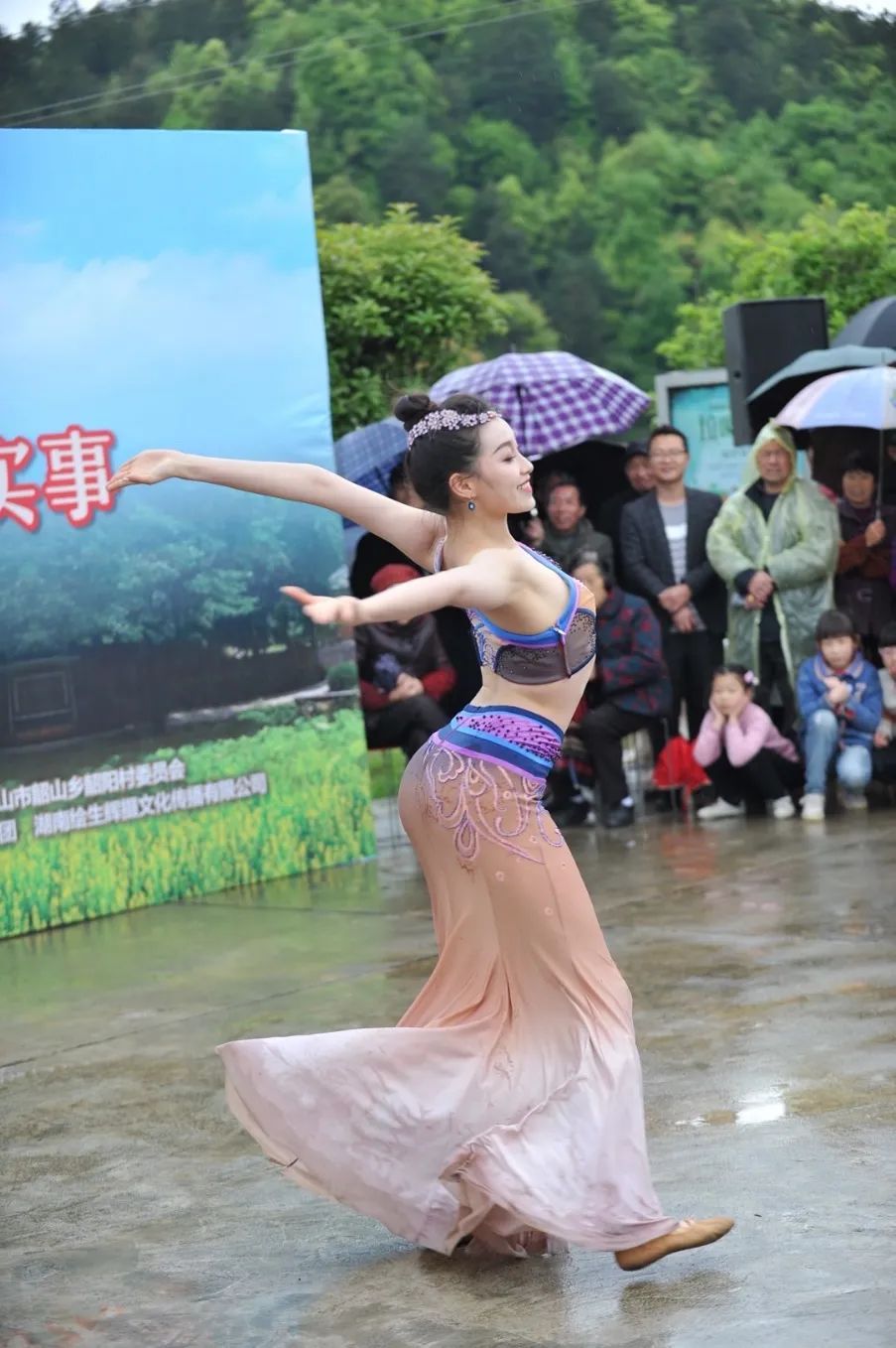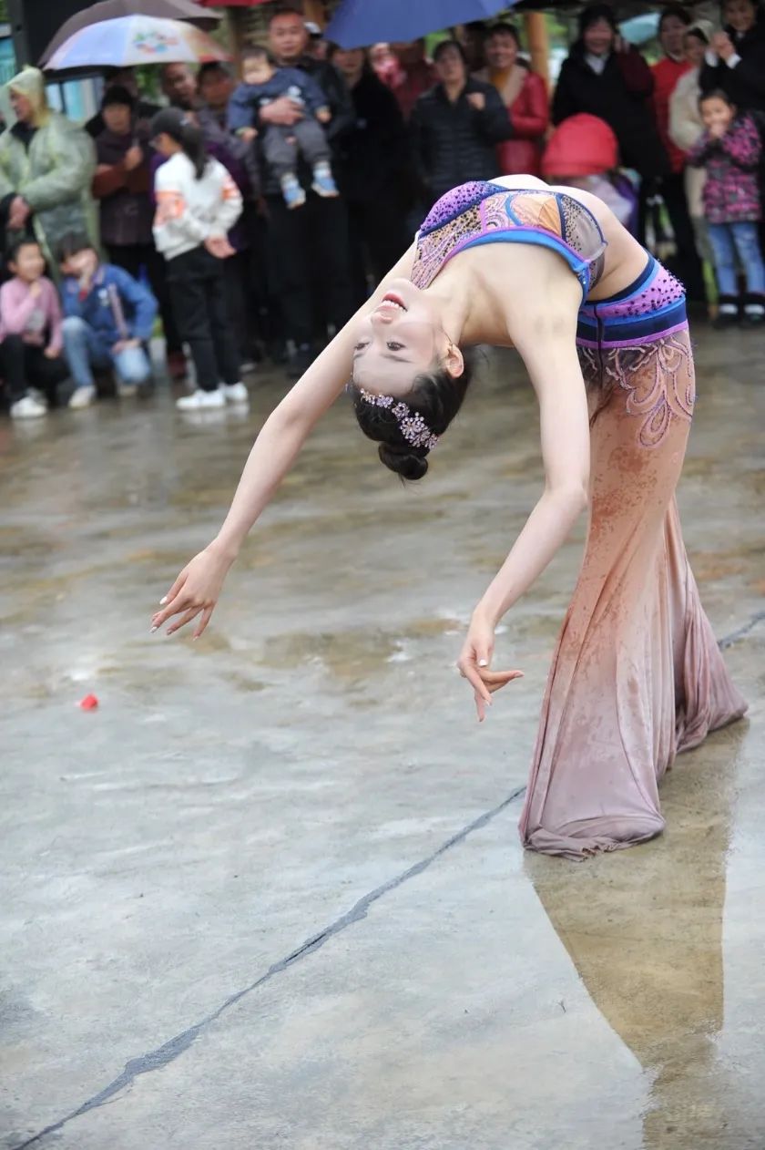 4月的韶山,阴雨绵绵。李美静与青年舞蹈家们展开了一场别开生面的表演。雨中他们全力投入、充满激情,观众冒雨观看、聚精会神,演员们高水平的表演为最基层百姓们献上了一场舞蹈盛宴。