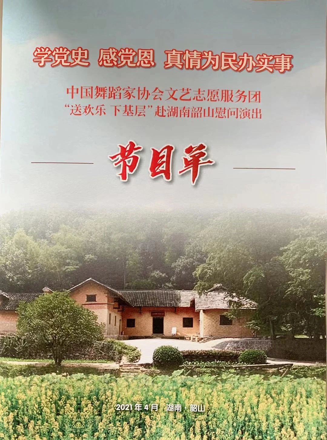 2018级舞蹈表演专业研究生李美静同学与青年舞蹈家黄豆豆、李响、曾明等人共同组成中国舞蹈家协会文艺志愿者服务团“送欢乐下基层”赴湖南韶山市韶阳村慰问演出活动。