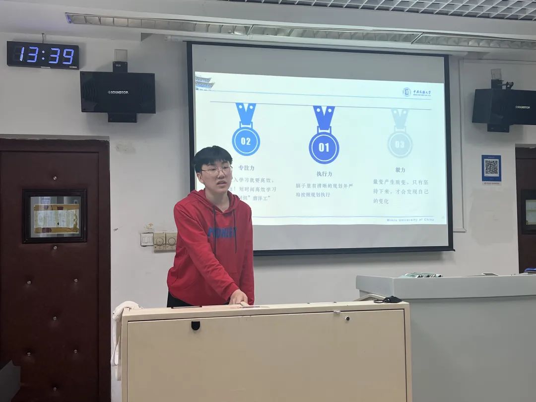 谢道远同学从“人生抉择”、“读书与求学”、“考研学习经验”三个方面进行经验分享。他分享了如何有条理清晰且高效作答经验,强调了提高作答逻辑性及工整性的重要性,期望同学们保持良好心态,明确目标,脚踏实地,坚定内心,方能始终。