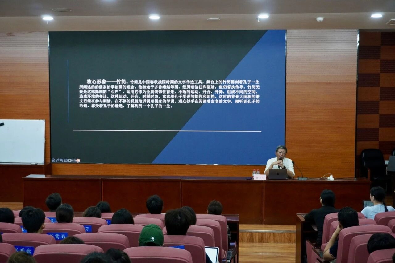 在讲座中,任教授以自己参与设计的多部代表作品为例进行深入剖析,如《孔子》《李白》彰显了中华文化中的文人气韵与哲思意境;《永不消逝的电波》展现了红色叙事的恢宏与力量;《浪潮》则以现代化的舞台语言呈现当代精神风貌;《对话·寓言2047》更是融合传统与科技,开创舞台美术的新表达。他指出,舞台光影在这些作品中既是艺术氛围的营造者,也是观众感知的引导者,能够在不经意间放大作品的感染力与表现力。