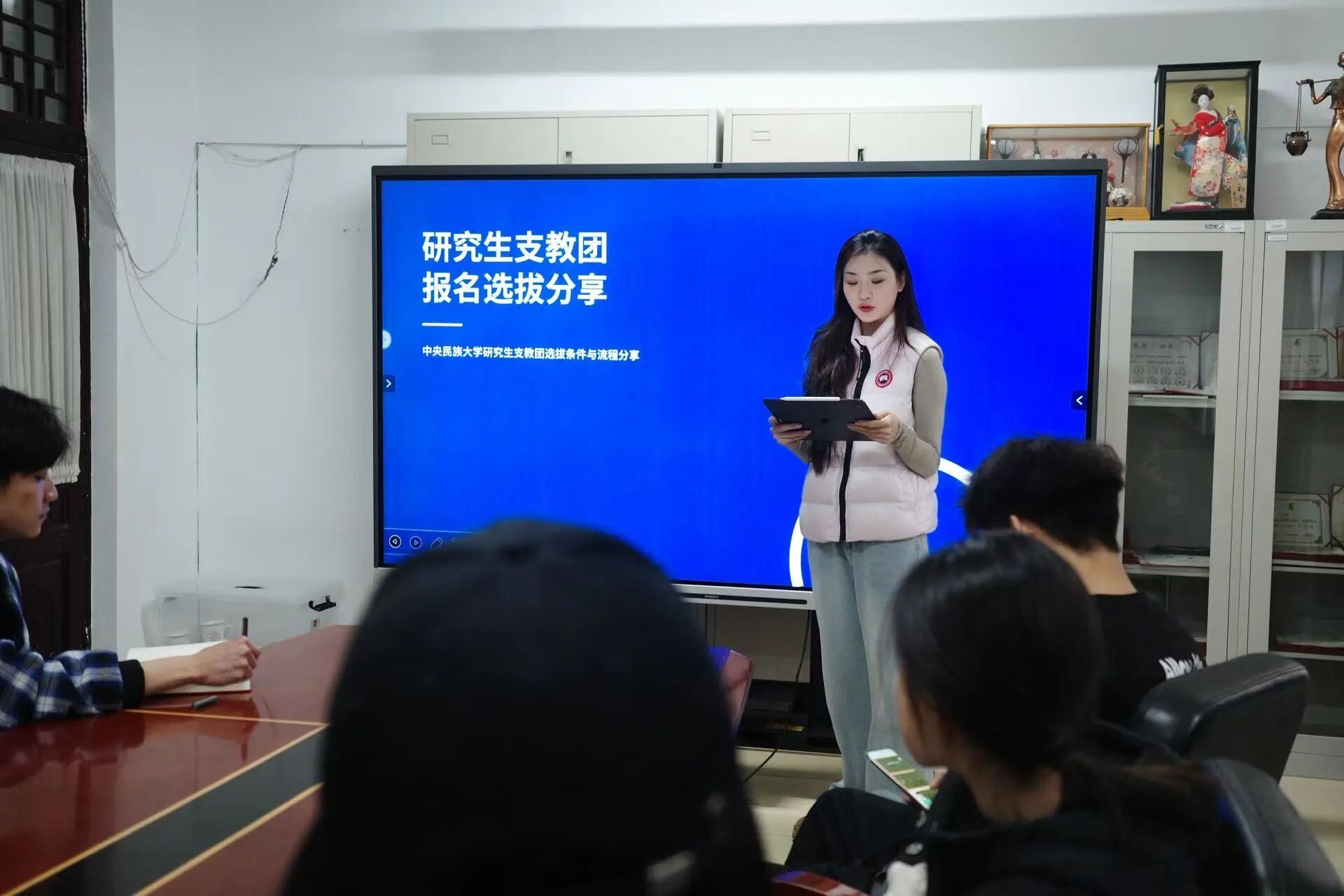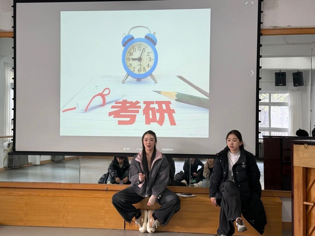 于2025年11月12日在18号楼教室开展了 “兴所向,舞之梦”系列活动考研、保研分享会,考研由25级MFA许嘉琪、张子依分享,保研由22级英才缪俣一恒、姚勤政以及25级MFA张明慧分享。