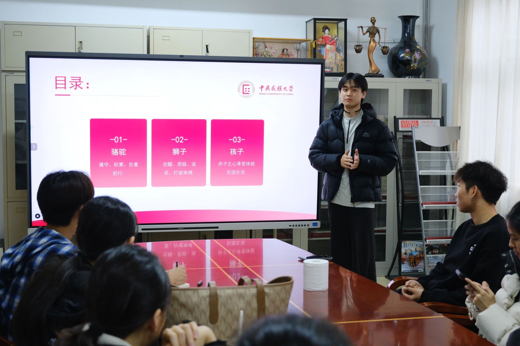 最后是学业保研的缪俣一恒同学以尼采的“骆驼-狮子-孩子”作为引用举列了三个阶段,帮助各位同学明确了各时期的保研规划,同时也分享了自身的学习经验,为正在考虑保研的同学提供了实用的指导和建议。