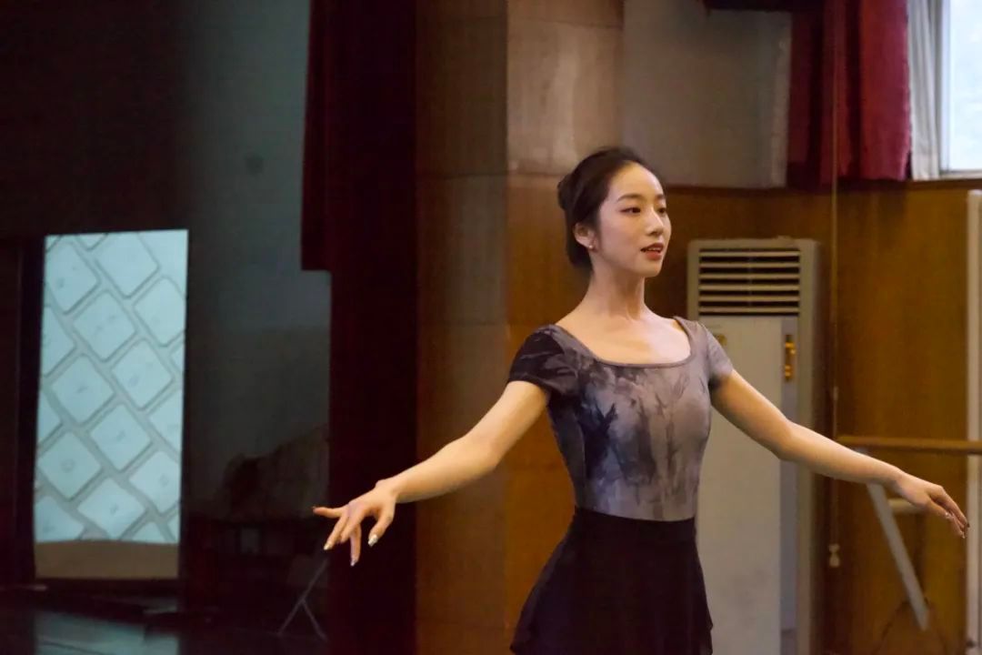 22级舞蹈专业研究生陈晓莉讲授了傣族典型技术技巧,她的授课对象为中专五年级学生。在示范中讲述了傣族舞蹈中典型技术技巧原地盖脚点转和斜展翅舞姿转,并与蒙古族、维吾尔族、藏族舞蹈中的转进行了对比,强调民族性。