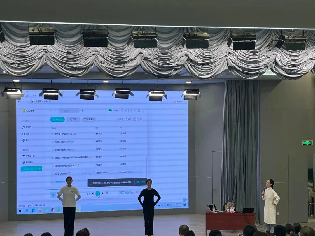讲座共分“理论讲解—实践—舞蹈赏析”三个部分。讲座过程中,杨希老师与在场同学们积极互动,气氛活跃。大家抛出了许多有价值的问题,引发在场同学们的深入思考。