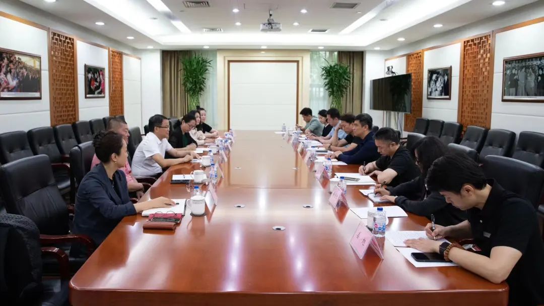 调研组成员与中央民族歌舞团的相关领导于会议室召开合作项目专题讨论会。中央民族歌舞团党委副书记、团长王成刚,业务部主任赵雄,创作研究部主任董雪海,舞剧团团长姜美红,人力资源部主任贾霆等8人出席会议。